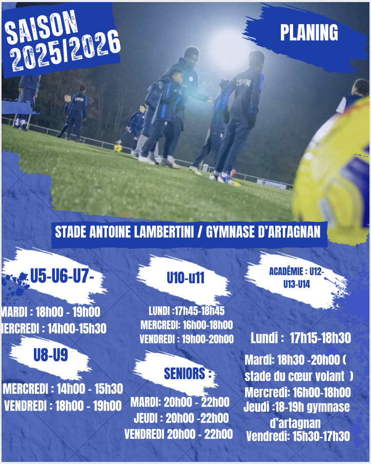 Nous nous efforçons de créer un environnement positif et inclusif où chacun peut s’épanouir. Nous valorisons le respect mutuel, l’entraide et le fair-play. Au CSPM, vous trouverez un groupe de coéquipiers prêts à vous soutenir, à vous encourager et à partager la passion du football avec vous.